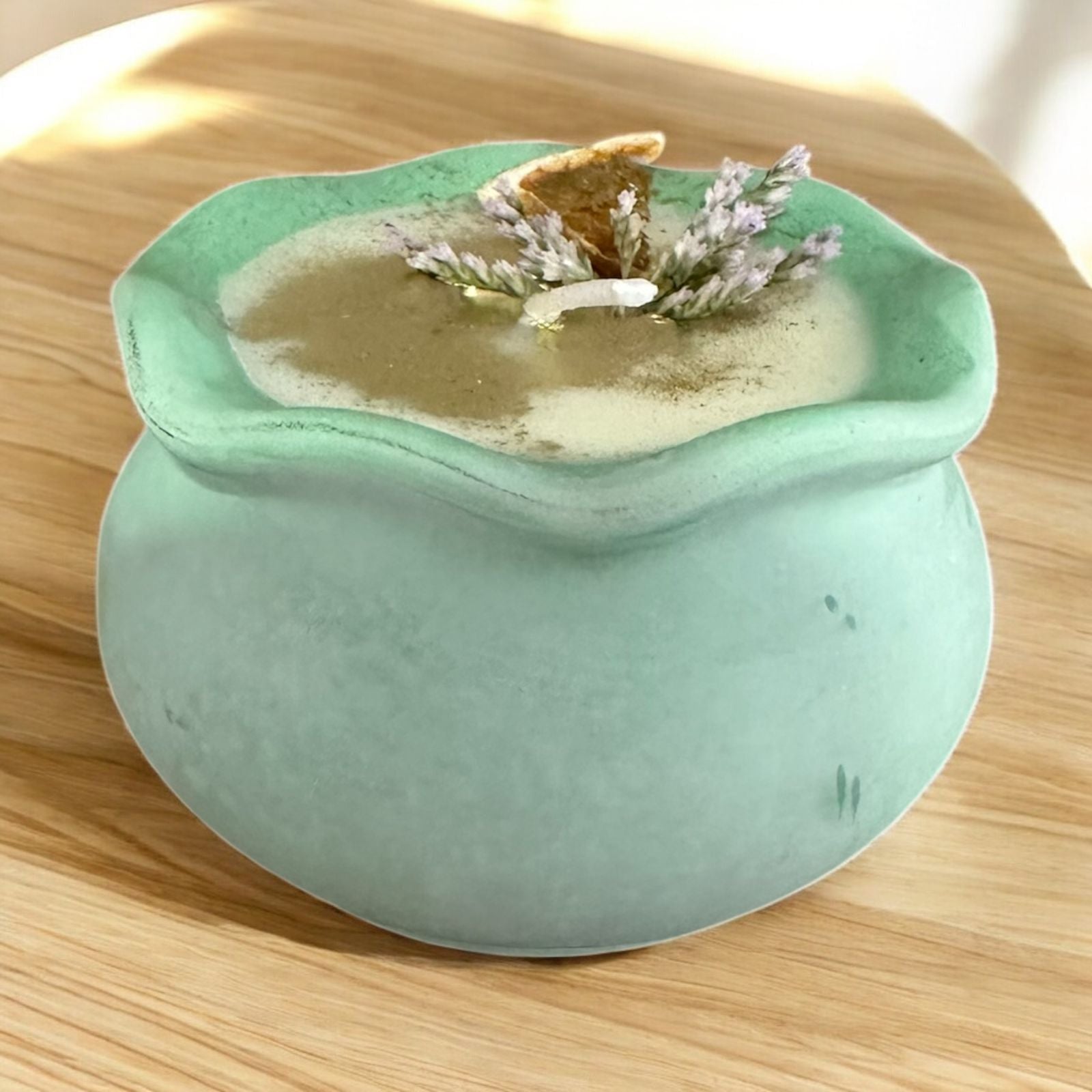🕯️ Tinaja única: Concreto en un profundo tono verde, símbolo de crecimiento y equilibrio.