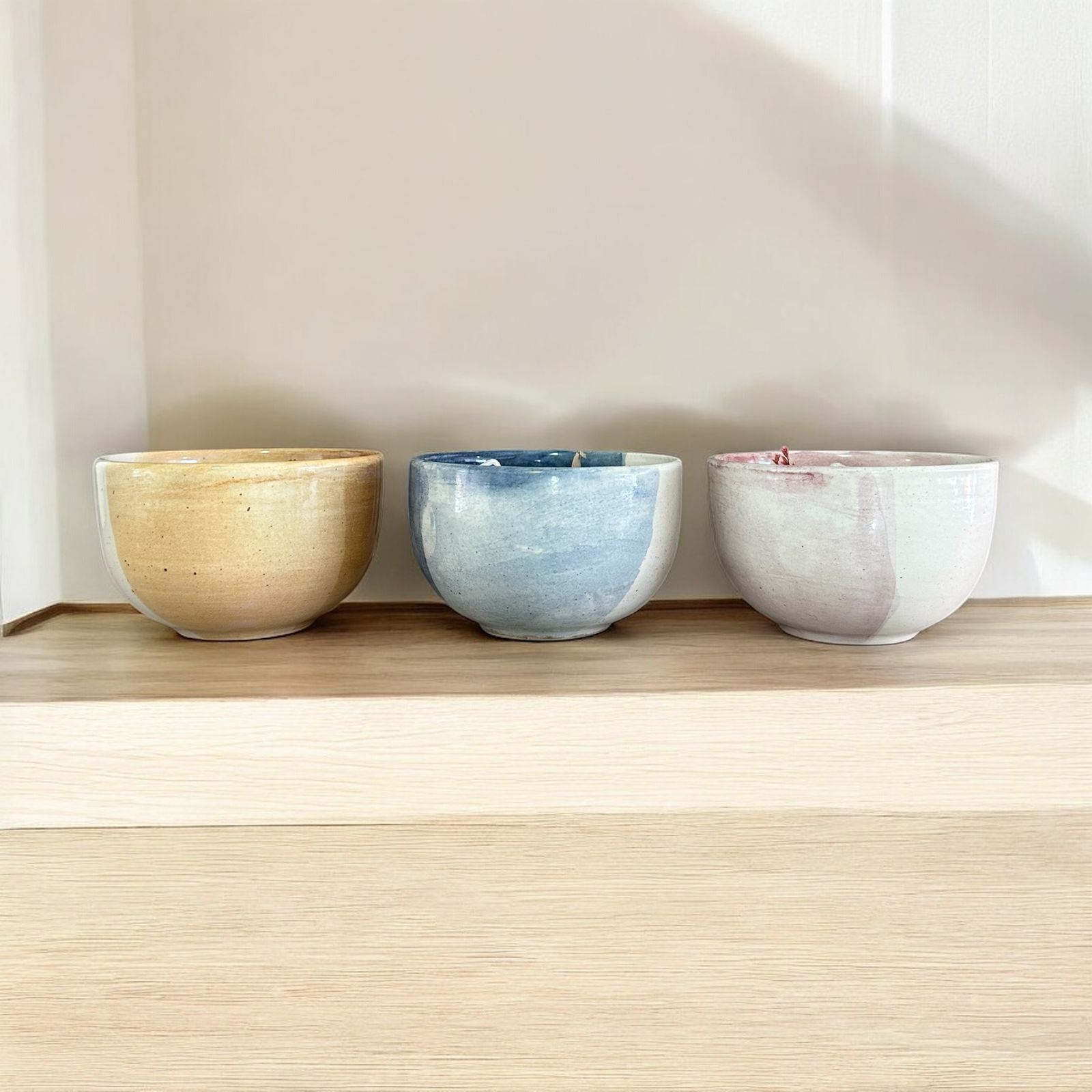🕯️ Velas en tazones de colores pasteles jaspeados, hechos a mano por artesanos de El Carmen de viboral. Con aromas suaves y frescos, son ideales para regalar o decorar espacios que invitan a la calma y la tranquilidad. ✨
